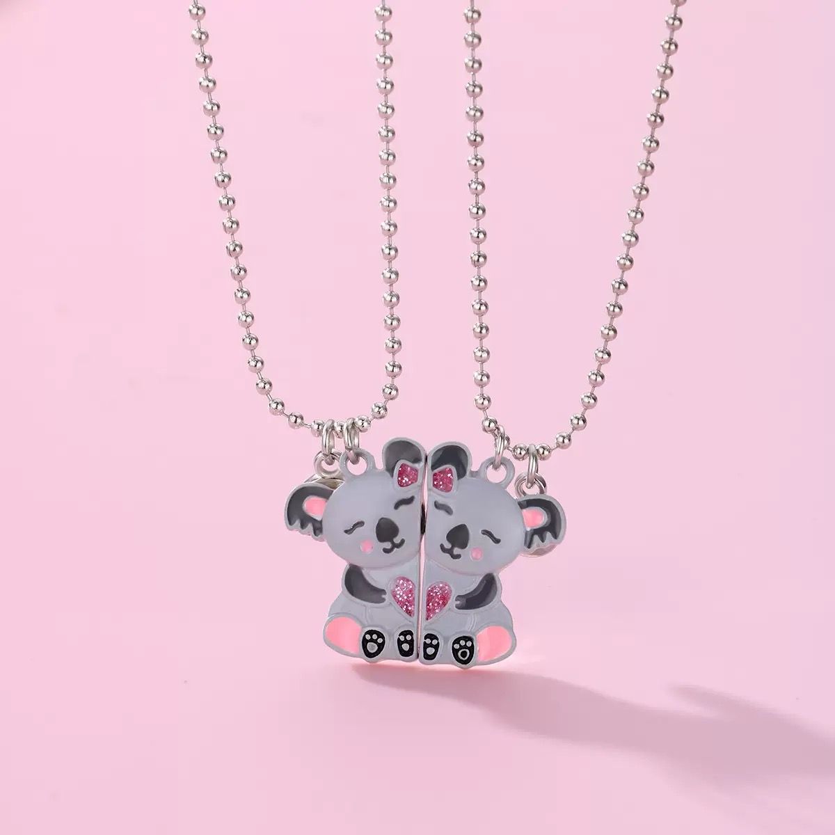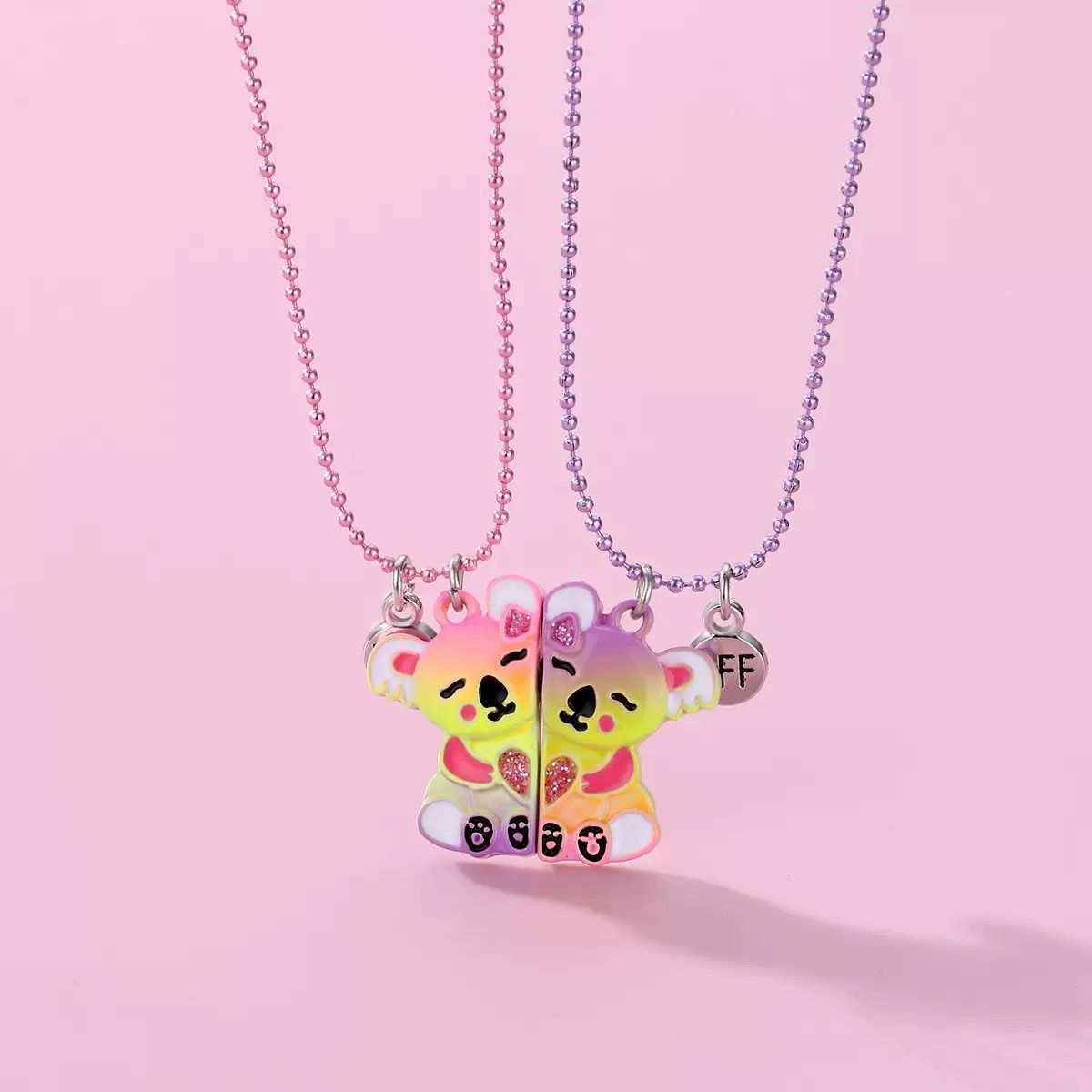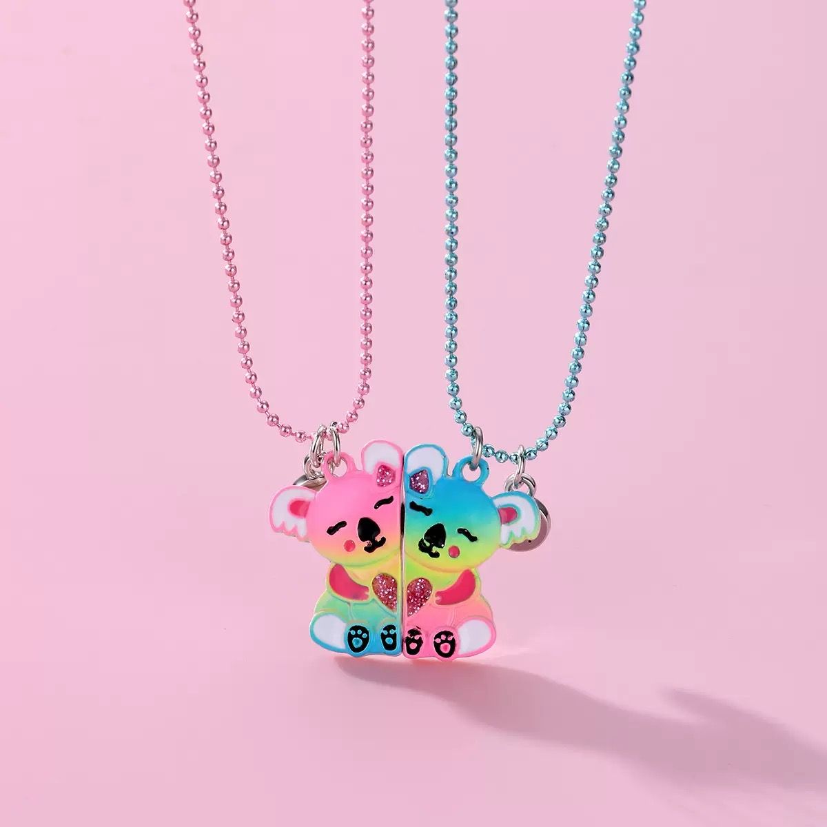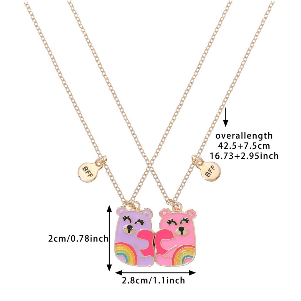 🦖Magnetic BFF Necklace🦖Our friendship necklace set includes 2 adorable hugging dino in brightly colored enamel with glitter heart. Magnetic attraction makes the dinosaur hug together while wearing them and getting closer, the little BFF hang beside the dino to secure your bond, super cute and fun.