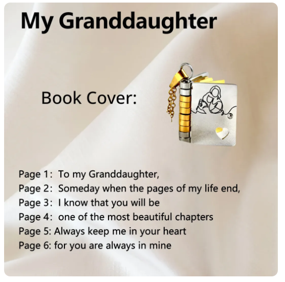 My Granddaughter Incredible Book Necklace - an engraved titanium
