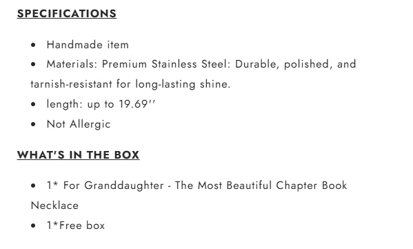 For Granddaughter - The Most Beautiful Chapter Book Necklace