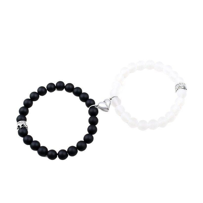 Magnetic Heart King & Queen Couple Bracelets Set (Black+White)