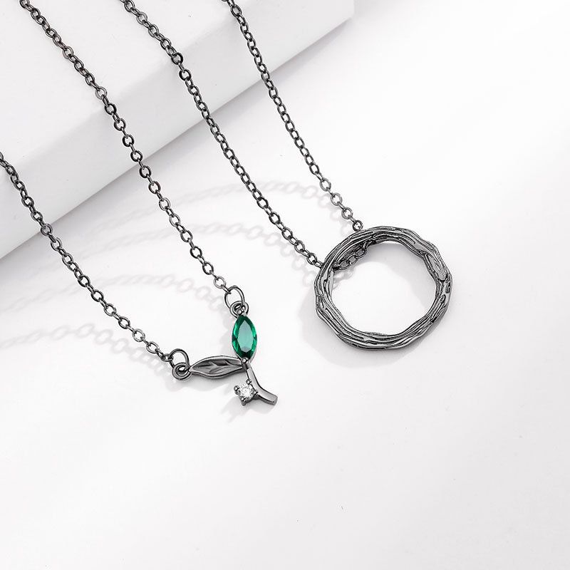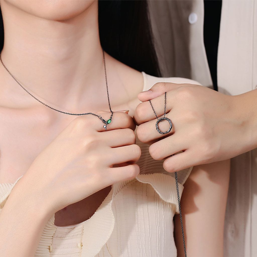 - The Twig Circle Pendant: Crafted with a textured black-tone metal, this circular twig design represents strength, stability, and the unbreakable foundation of your relationship. It’s a subtle reminder of the support you offer one another.