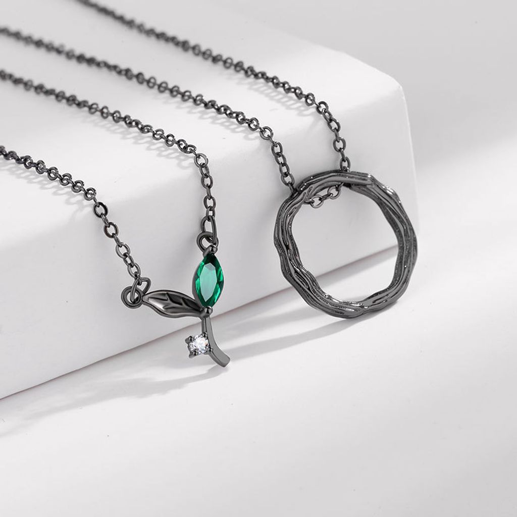 Twig & Emerald Leaf Couple Necklaces – A Symbol of Everlasting Growth & Bond