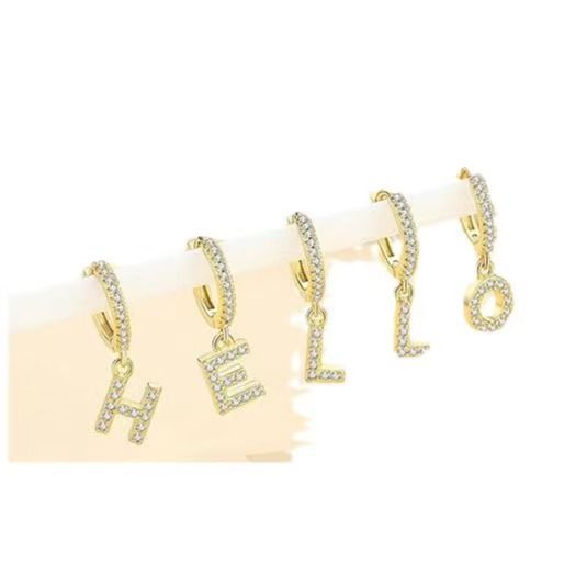 Dainty Gold Chain Earrings for Women – 14K Gold Plated Hypoallergenic Initial Rhinestone Letter Hoop Earrings Set with Cubic Zirconia, Stackable Hoop Jewelry
