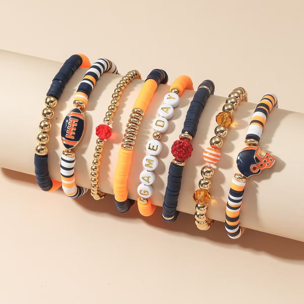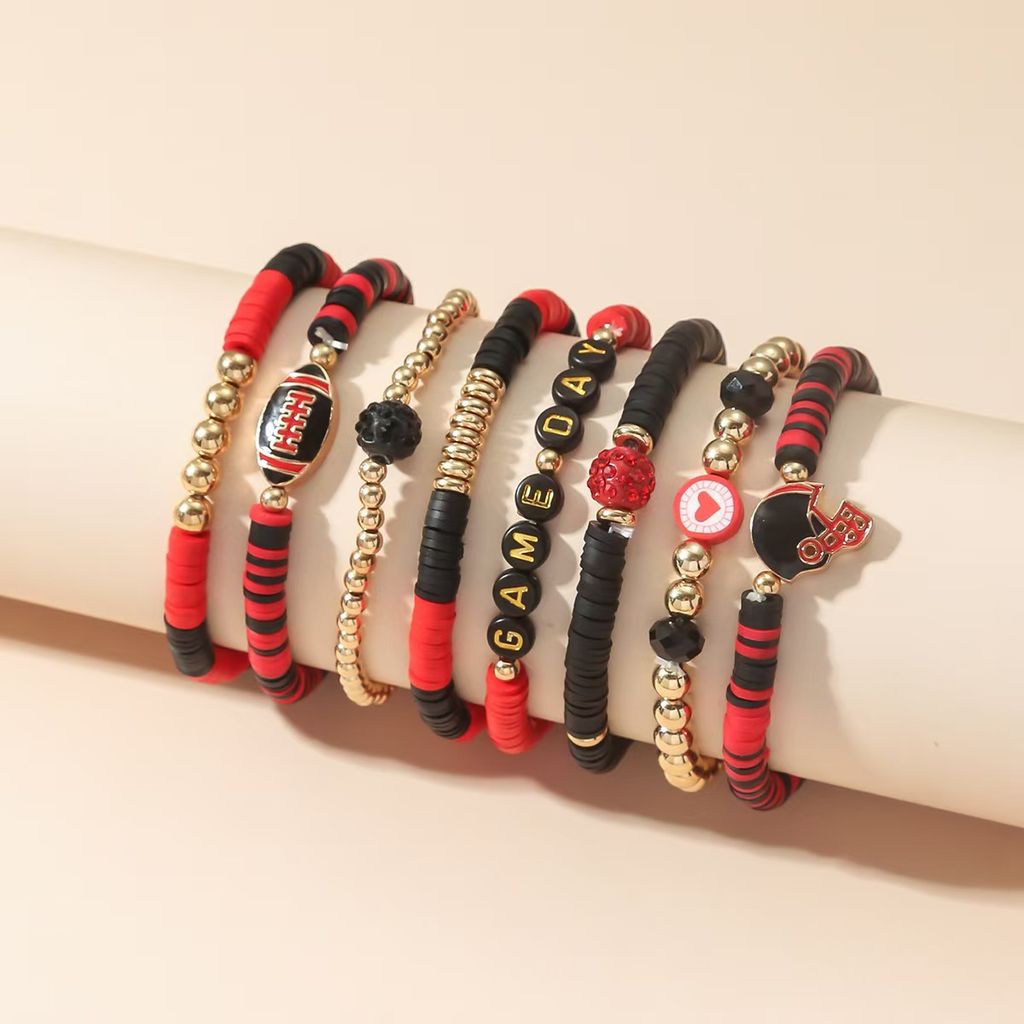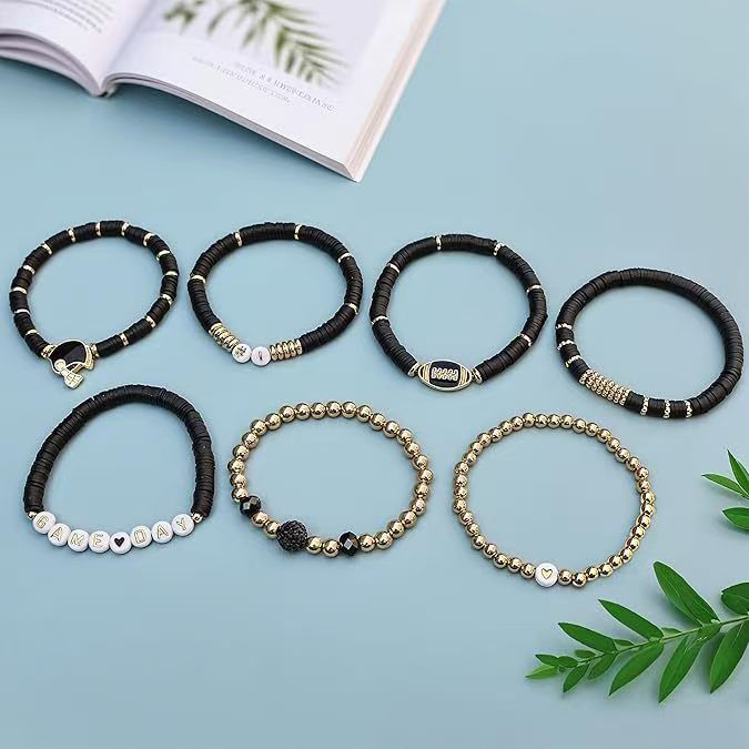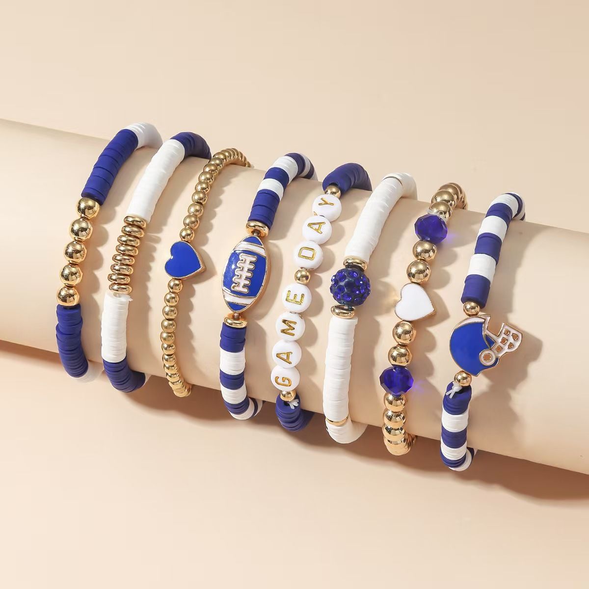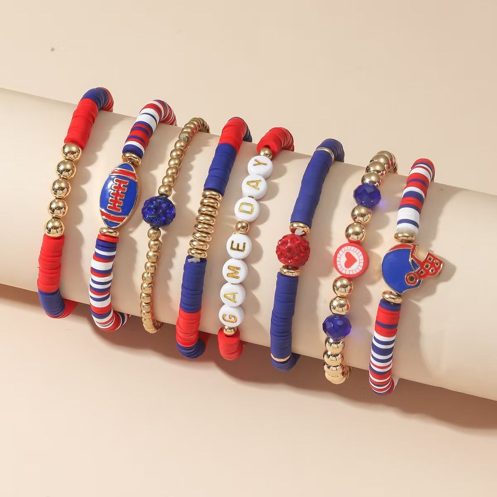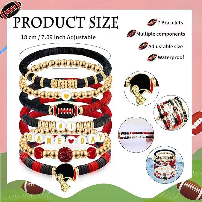 Authentic Football Design: Features 7 unique stretch bracelets with iconic football-themed charms, "GAME DAY" letter beads, and heart accents – perfect for showing team spirit on game day.suitable for casual outings, tailgating, watch parties, or everyday wear.