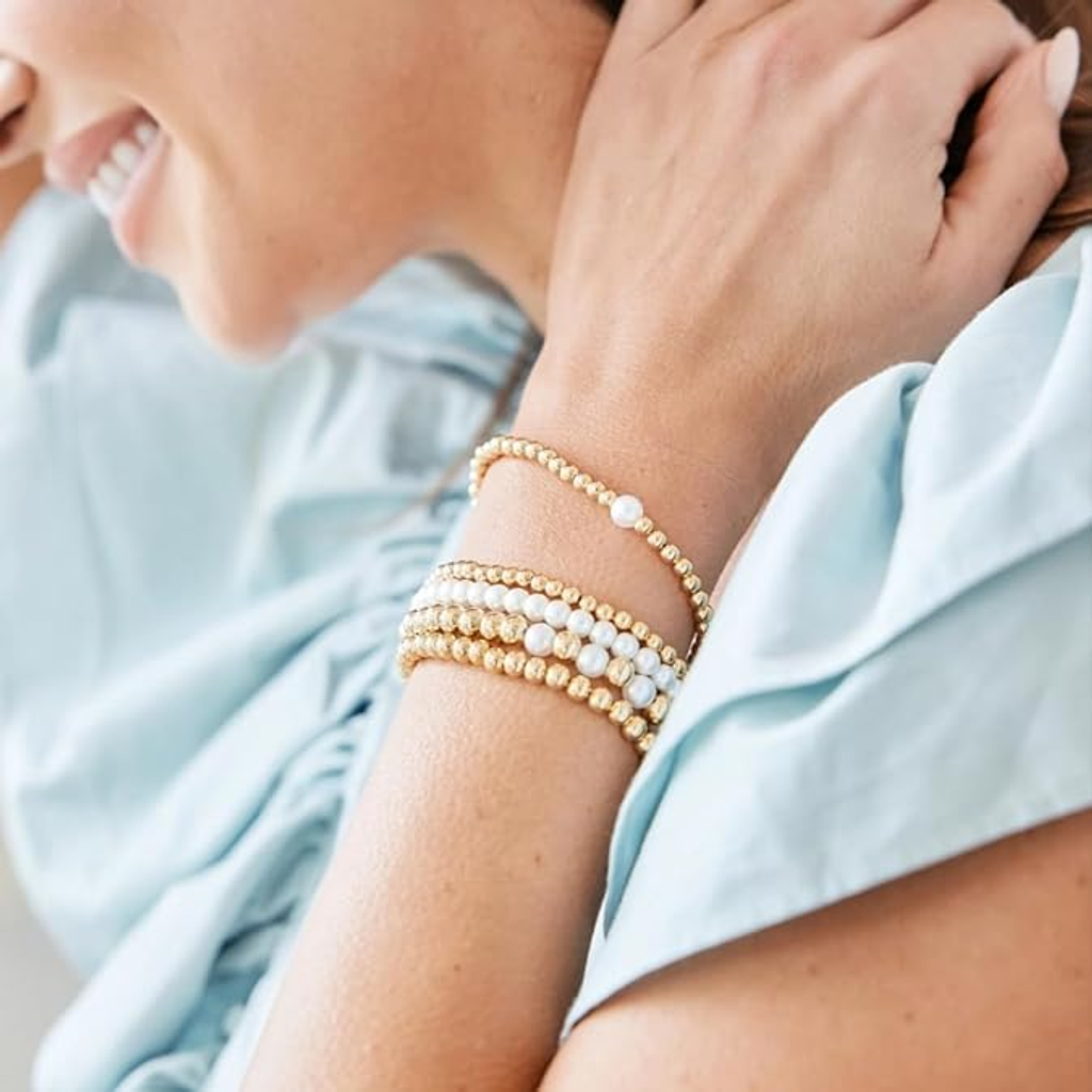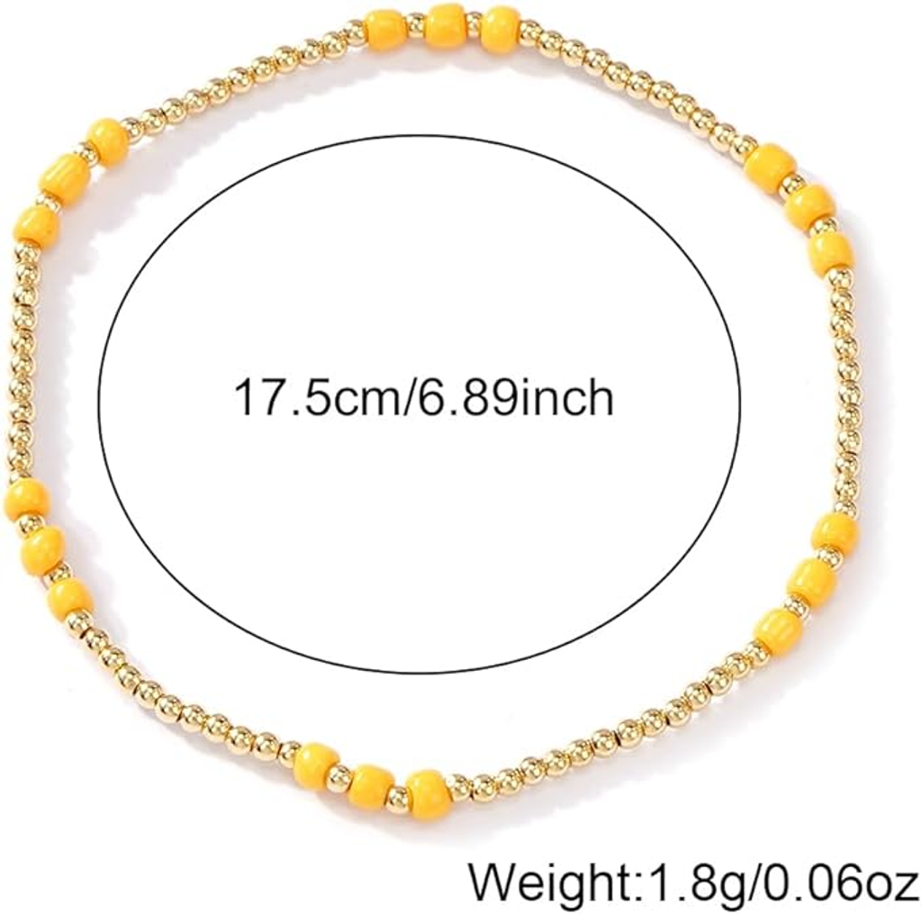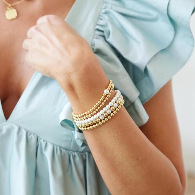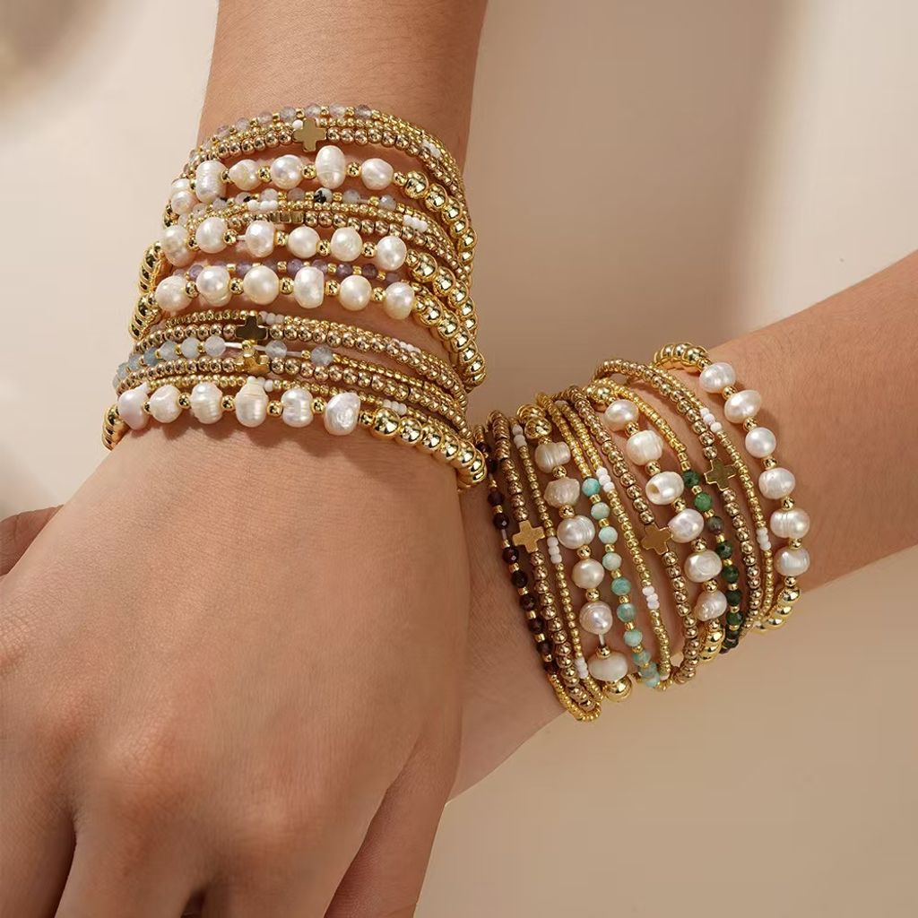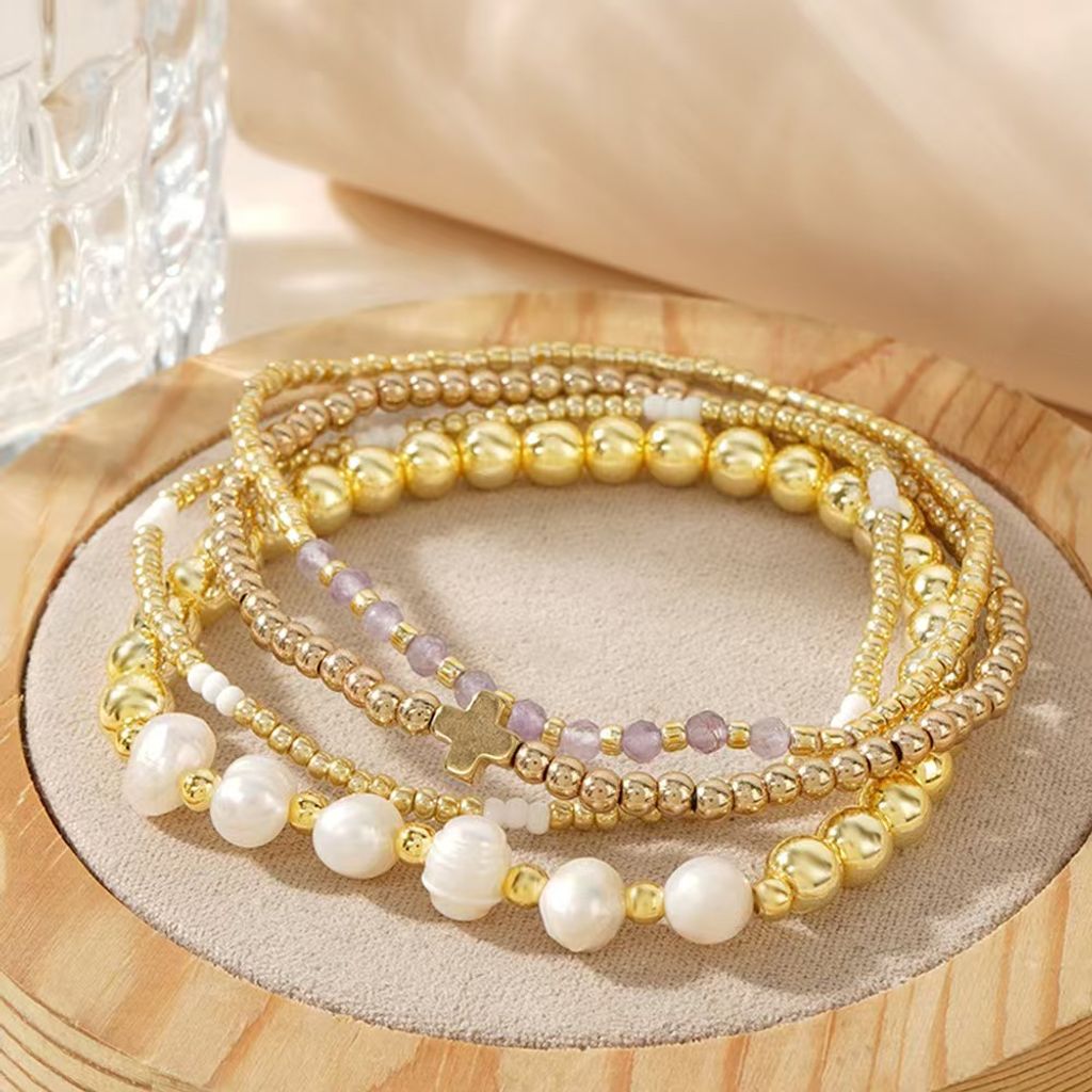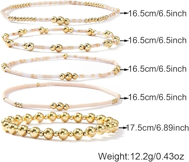 Gold Beaded Bracelets,Cross Bracelets Set Pearl Beads Bracelets Handmade Boho Dainty Stackable Gold Beads Ball Jewelry