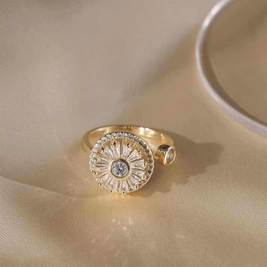 Gold Crystal Anxiety Relief Spinning Ring,Spinning Fidget Anxiety Ring,Women'S Adjustable Open Ring