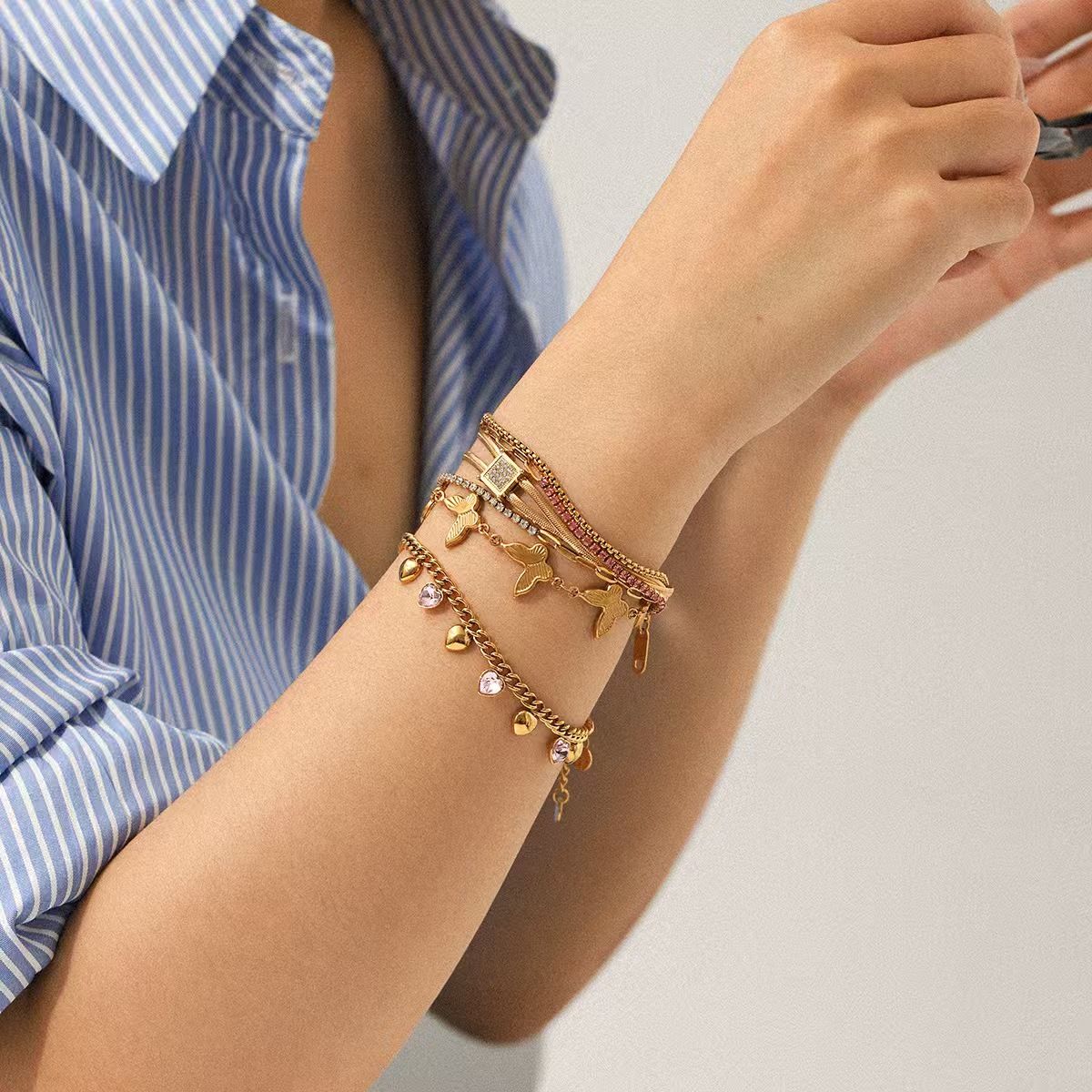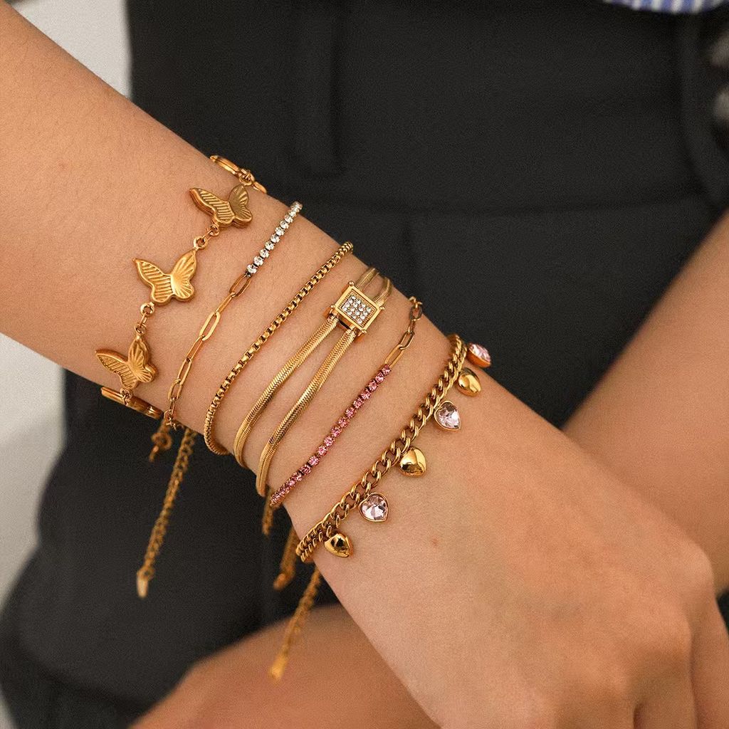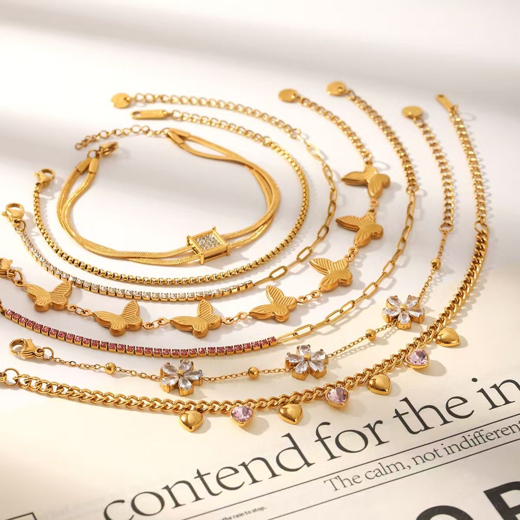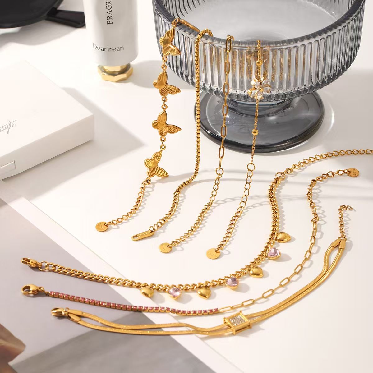 Stainless steel bracelet: The double chain butterfly charm bracelet is made from stainless steel, hypoallergenic, water-resistant, and long-lasting