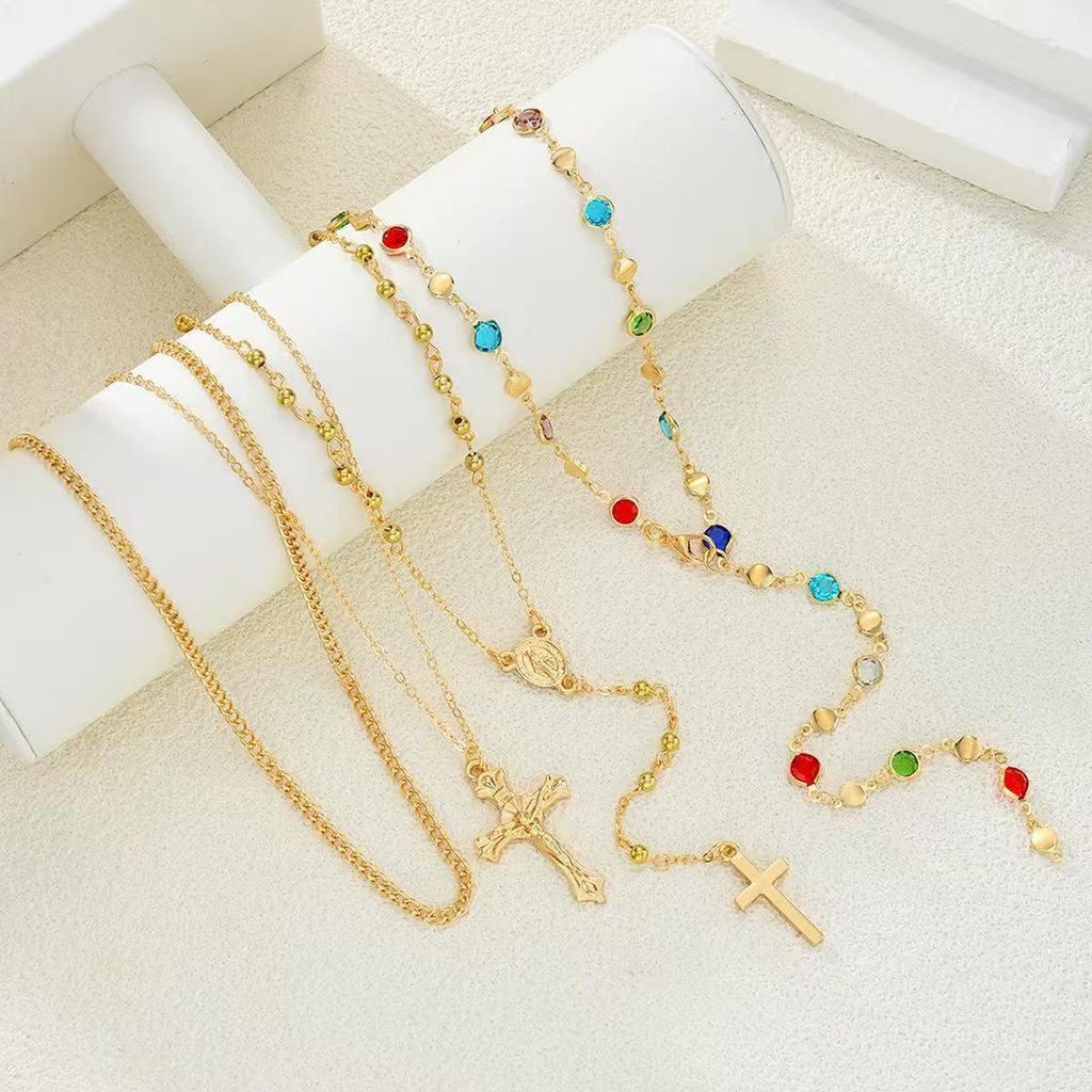 Layered Gold Cross Necklaces for Women Trendy, Bohemian Bead Pearl Y Long Pendant Necklace Set, Vintage Rosary Necklace Stack Adjustable Length