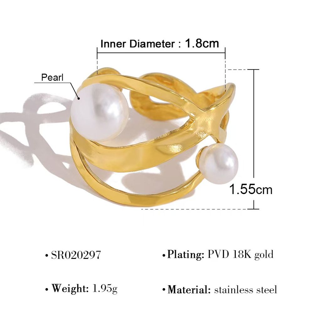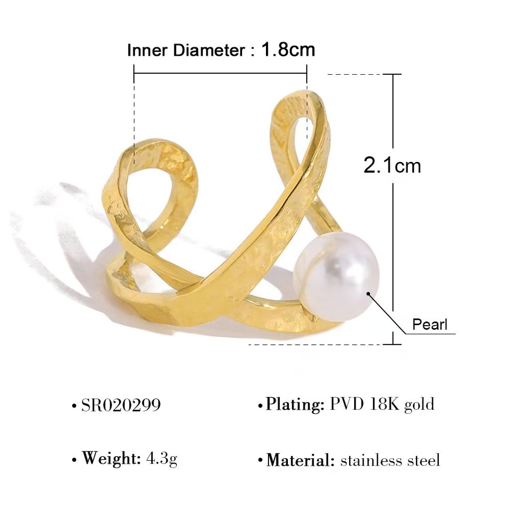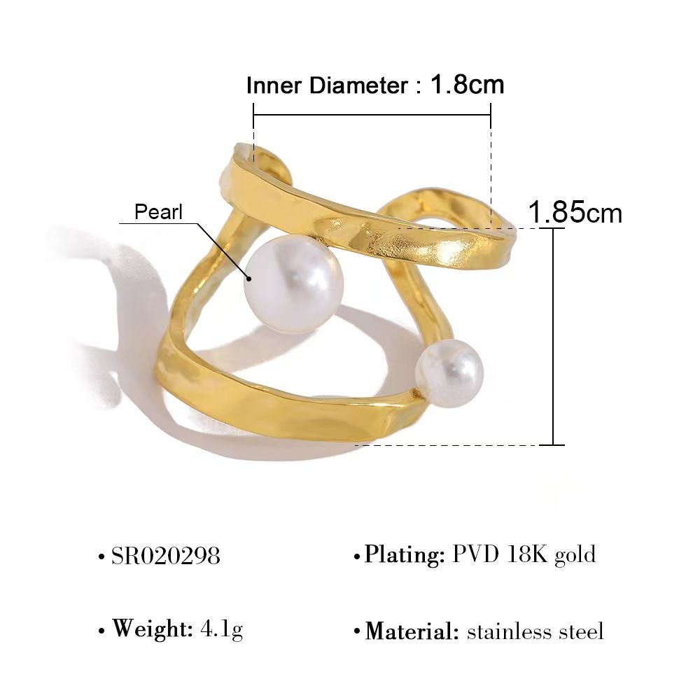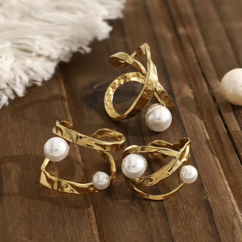 Trendy Open Twist Pearl Ring for Women,Chunky Gold Statement Dome Crystal Zircon Rings