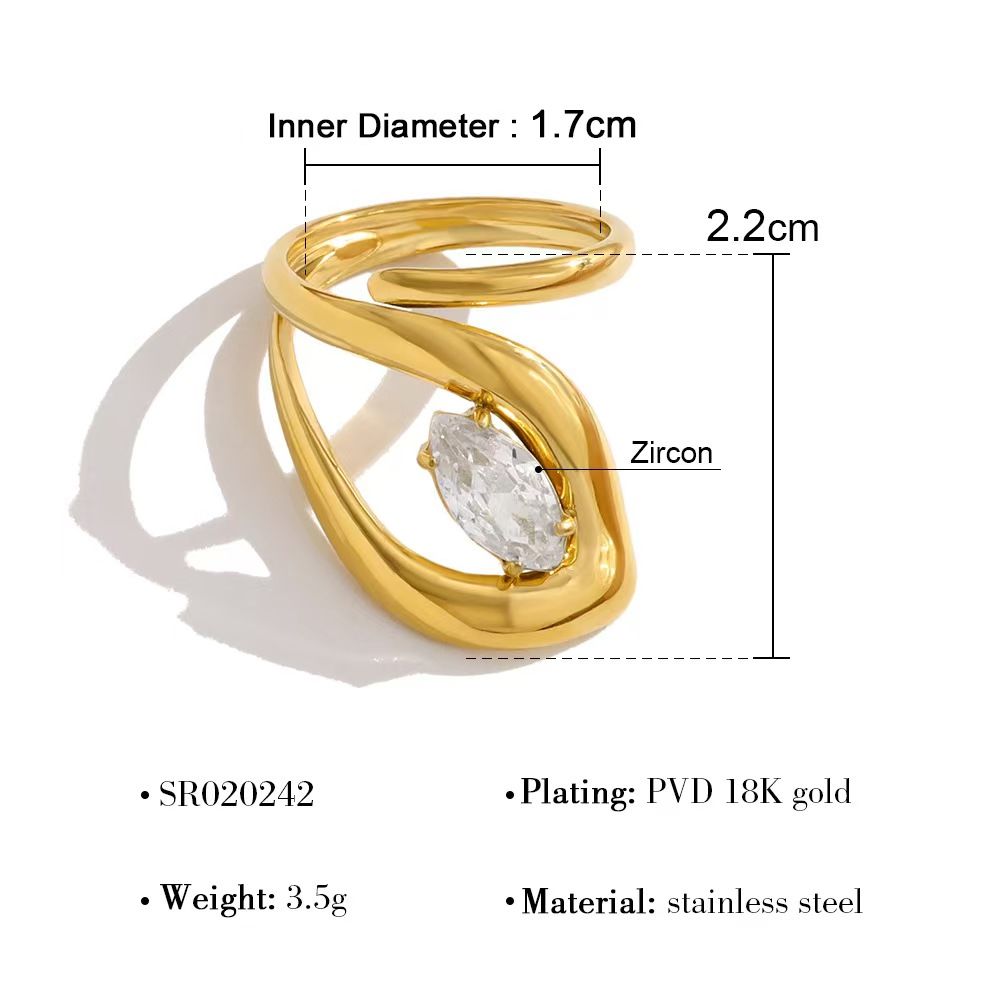 Statement Chunky Gold Hollow Oval Ring for Women Trendy:These twist rings are made of 18K gold-plated stainless steel and cubic zirconia,This beautiful rings is perfect for any clothing.This design is simple and exquisite, suitable for any occasion.